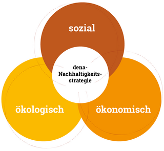 In its sustainability strategy, dena pursues an integrative model that treats all dimensions of sustainability – ecological, social and economic – as equally important. This means that the objectives of the sustainability strategy encompass these three areas equally and that space is created for the identification and utilisation of synergies between them.