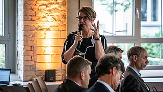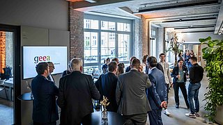 In diesem Rahmen kam die geea mit rund 40 Vertreterinnen und Vertretern aus Politik, Wirtschaft und Wissenschaft am 4. Juli 2023 zusammen und trat in einen intensiven Dialog zum aktuellen Status der Energiewende im Gebäudesektor. Die zentralen Fragestellungen des geea-Dialogs „Klimaneutraler Gebäudesektor: Welche Impulse brauchen wir jetzt?“ orientierten sich an der bevorstehenden Novelle zum Gebäudeenergiegesetz (GEG), den erforderlichen gebäudespezifischen Förderungen, dem Gesetz zur kommunalen Wärmeplanung, welches mit dem GEG verzahnt werden sollte, sowie Aspekten der EU-Gebäudepolitik.