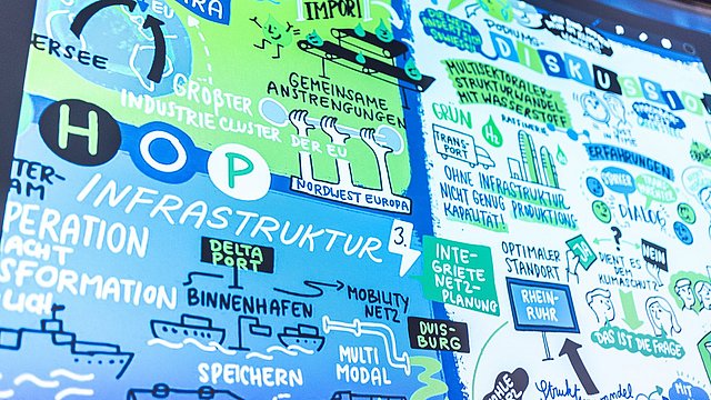 Grüner Wasserstoff spielt eine zentrale Rolle bei der Transformation des Energiesystems. Er kann dazu beitragen, die Dekarbonisierung der Industrie voranzubringen. Darüber hinaus kann Wasserstoff Energie aus erneuerbaren Quellen speichern und bei Bedarf in Strom zurückverwandeln. Diese Speicherfähigkeit entkoppelt Stromproduktion vom Stromverbrauch, verringert Abhängigkeiten und stabilisiert die Stromversorgung nachhaltig und verlässlich. Wasserstoff kann auch in bestimmten Verkehrsanwendungen wie zum Beispiel im Flugverkehr oder in der Hochseeschifffahrt eine Funktion übernehmen.