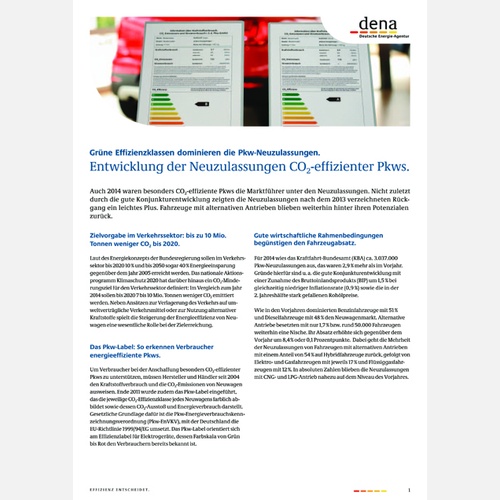 Monitoringbericht zu den Neuzulassungen von Pkw nach CO2-Effizienzklassen, Segmenten und unter Berücksichting von Fahrzeugen mit alternativen Antrieben. Der Bericht fasst die Trends auf dem Pkw-Neuwagenmarkt des Jahres 2014 zusammen: den Zuwachs der Pkw-Neuzulassungen in Deutschland, den deutlichen Anstieg von Fahrzeugen in den grünen CO2-Effizienzklassen, den weiterhin geringen Marktanteile von Fahrzeugen mit alternativen Antrieben und das überproportionale Wachstum von SUVs und Geländewagen. Betrachtet weden die Zahlen der Neuzulassungen der Jahre 2012 bis 2014.