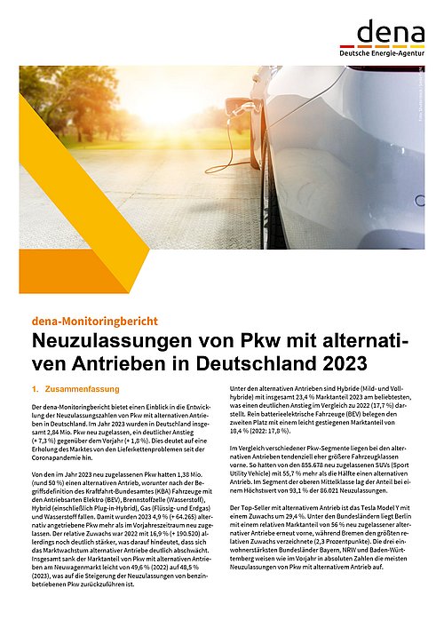 dena-MONITORINGBERICHT: Neuzulassungen von Pkw mit alternativen Antrieben in Deutschland 2023