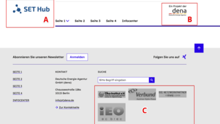 C) Partnerlogos: die Logos im Footer können nach dem Anlegen eines Projekts über den Wizard in den Seiteneigenschaften der Projektstartseite angepasst oder gelöscht werden.