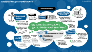 In der abschließenden Podiumsdiskussion wurden die Potenziale norddeutscher Projekte betont: Der Hafen Hamburg plant, sich als Importdrehscheibe für Flüssigwasserstoff zu etablieren. Der Hamburg Green Hydrogen Hub (100 MW) nutzt bestehende Infrastruktur und ist ans Windnetz sowie das künftige H₂-Kernnetz angebunden. Das NRL betonte, dass gezielte Förderstrukturen und Marktintegration, etwa über den Regelenergiemarkt, sinnvoll wären, um die norddeutschen Standortvorteile ausspielen zu können. Die Salzkavernenspeicher von Storag Etzel haben dank einzigartiger Speicherinfrastruktur große Potenziale, wobei allerdings auf den Netzausbau und die Wirtschaftlichkeit geachtet werden sollte. Entscheidend für die Wasserstoffwirtschaft im Norden sind nun ein zeitnaher Ausbau der Infrastruktur und breite Kooperation.