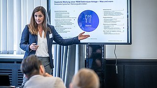 In drei Workshops wurden am Vormittag die Themen Wasserstoffspeicher, Elektrolyse im Betrieb sowie systemdienliche Elektrolyse in interaktiven Formaten diskutiert.